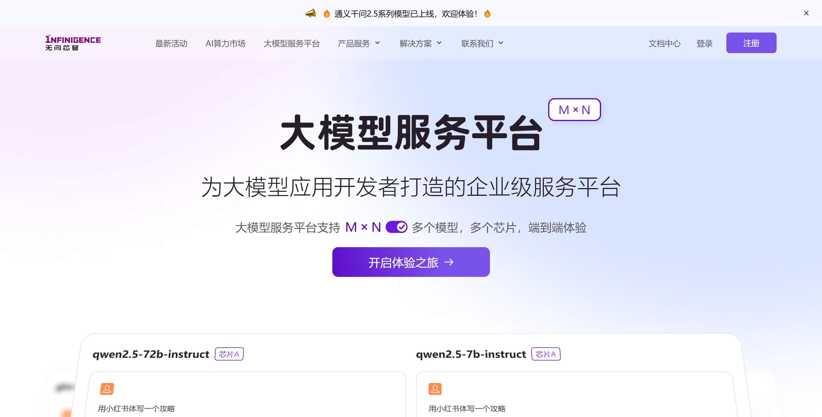 - 注册与登录:访问无问芯穹的官方网站https://cloud.infini-ai.com/platform/ai或平台,进行注册并登录账号。