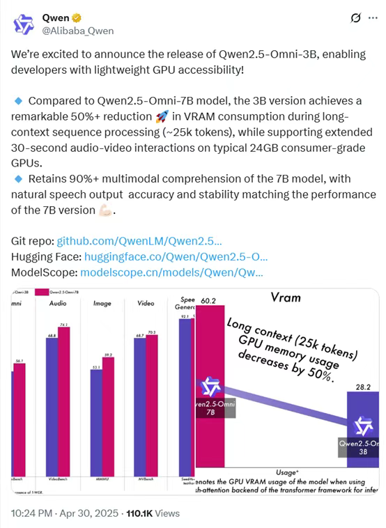 Qwen2.5-Omni-3B : 阿里 Qwen 团队推出的轻量级多模态 AI 模型