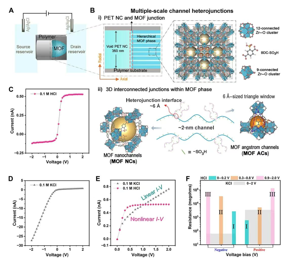 莫纳什大学的科学家们将刚获得诺贝尔化学奖的金属有机框架(MOF)材料制成了芯片,这一成果为新一代计算机的发展带来了新的可能性。这种纳米流体芯片不仅具备常规计算能力,还能记住之前的电压变化,形成类似大脑神经元的短期记忆。研究人员通过构建分层纳米流体晶体管器件 h-MOFNT,实现了质子的非线性传输特性,并模拟了电子 FET 的输出电流特性。实验表明,该芯片具备流体忆阻和学习特性,能够记住过去电压状态。这一突破证明了 MOF 材料在液态系统中的巨大潜力,为未来的类脑计算和信息存储提供了新的方向。来源:微信公众号【量子位】