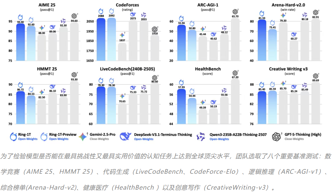 蚂蚁集团开源了万亿参数思考模型Ring-1T,这是全球首个开源的万亿参数思考模型。该模型在数学、编程、逻辑推理等多维基准上表现优异,达到开源SOTA水平,部分测试接近闭源旗舰GPT-5表现。在IMO 2025测试中,Ring-1T解出4题,达到银牌水平,展现了强大的复杂推理能力。来源:微信公众号【量子位】