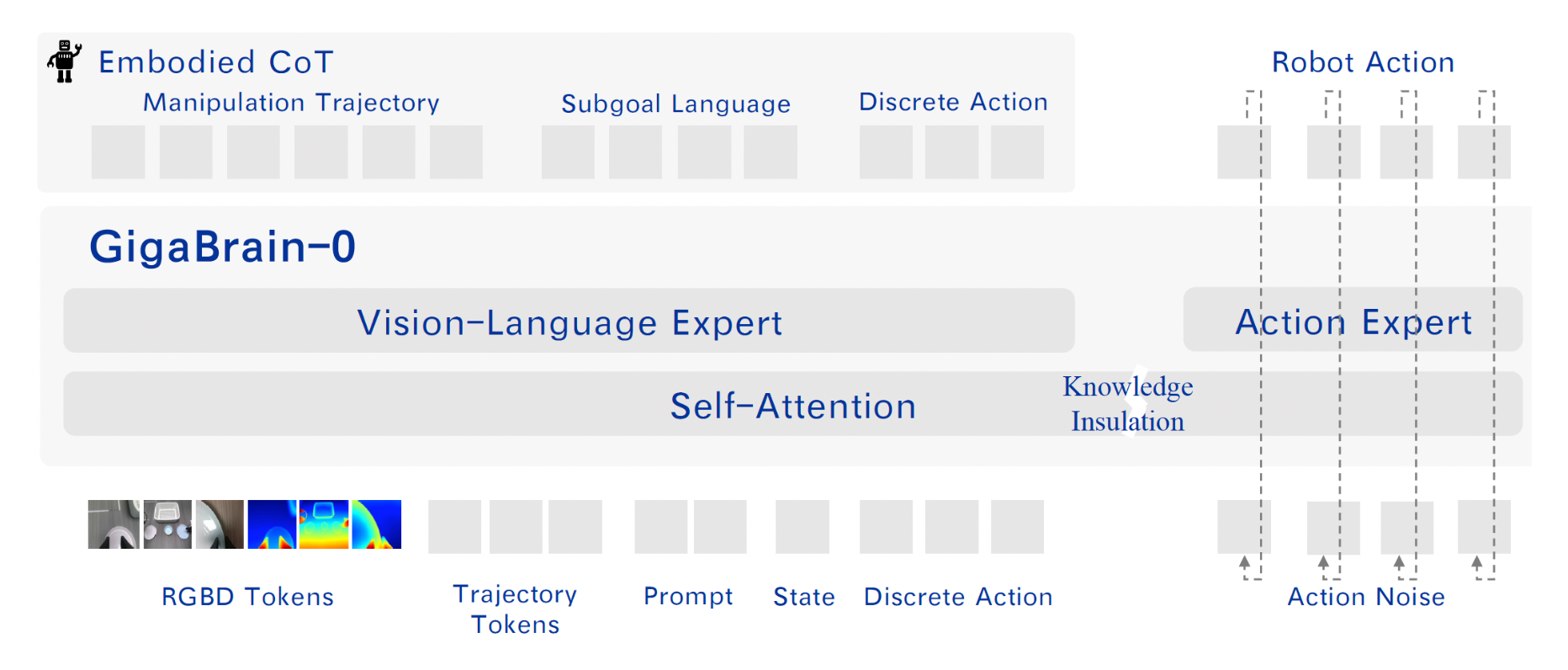 - RGB-D 输入建模:通过整合深度信息,增强对 3D 几何形状和空间布局的理解,提升操作精度。