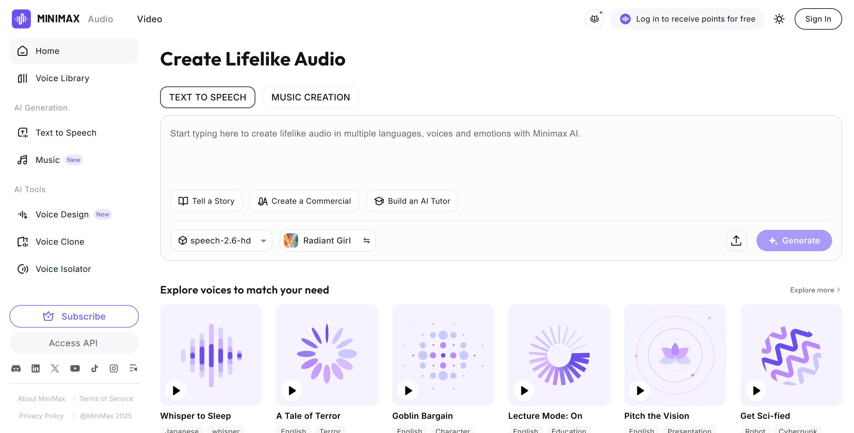 - 访问 MiniMax 开放平台:通过 MiniMax Audio 官网 或 开放平台 注册账号并登录。