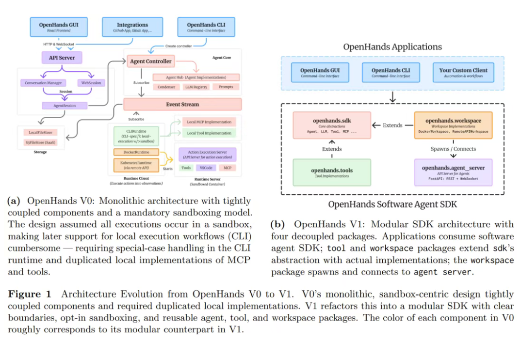 OpenHands 开发团队宣布其智能体框架完成架构重构,从 V0 进化到 V1。新版本在灵活性、安全性和可靠性方面大幅提升,支持无缝本地到远程执行,并集成了原生沙盒化执行和多 LLM 路由等功能。与 OpenAI、Claude 和 Google 的 SDK 相比,OpenHands 提供了更强大的功能和更高的可扩展性,为智能体的原型设计和大规模部署提供了实用基础。来源:微信公众号【机器之心】