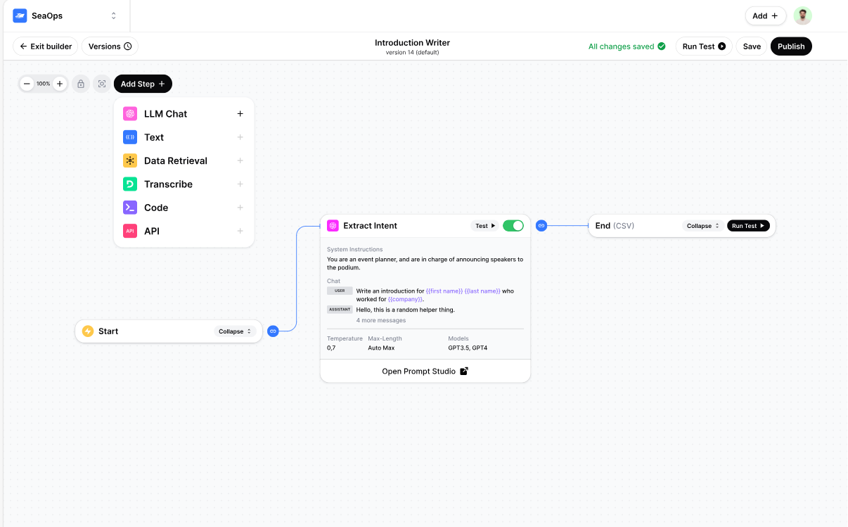 使用最新的语言模型(例如 GPT-4 32k 和 Claude 2)设计和启动强大的工作流程和代理。