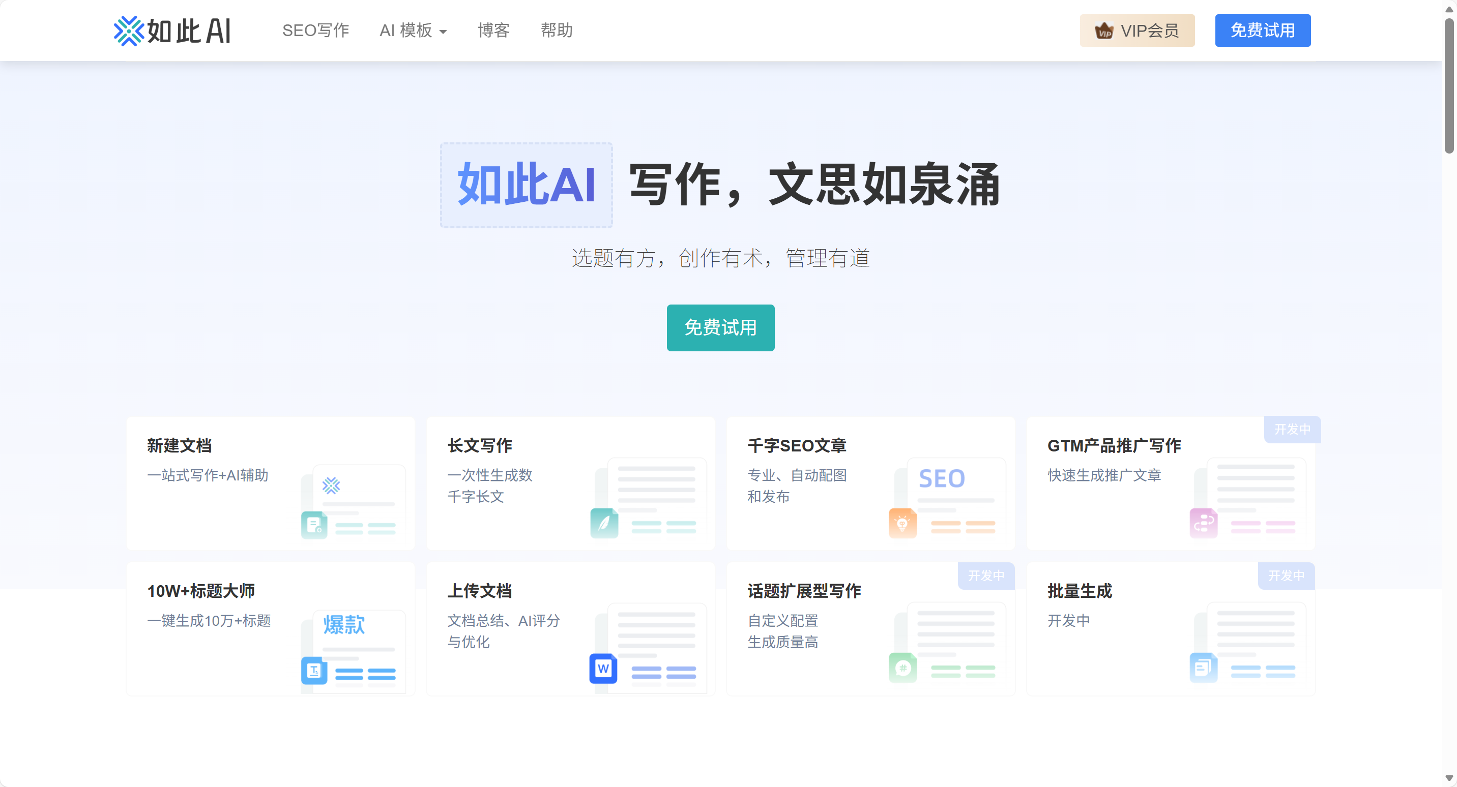 - 智能内容生成:支持SEO文章、小红书笔记、短视频脚本等100+内容类型,提供商业分析、营销文案等模板,用户输入关键词或热点方向即可快速生成初稿。