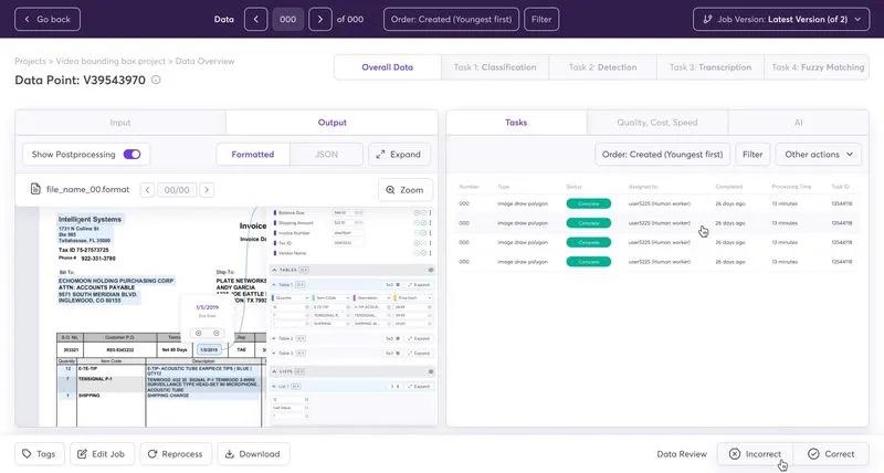 处理 100% 的复杂情况,文件、发票、PDF 文件、表格,使用 super.AI 智能文档处理 (IDP) 实现端到端业务流程自动化,并保证结果。