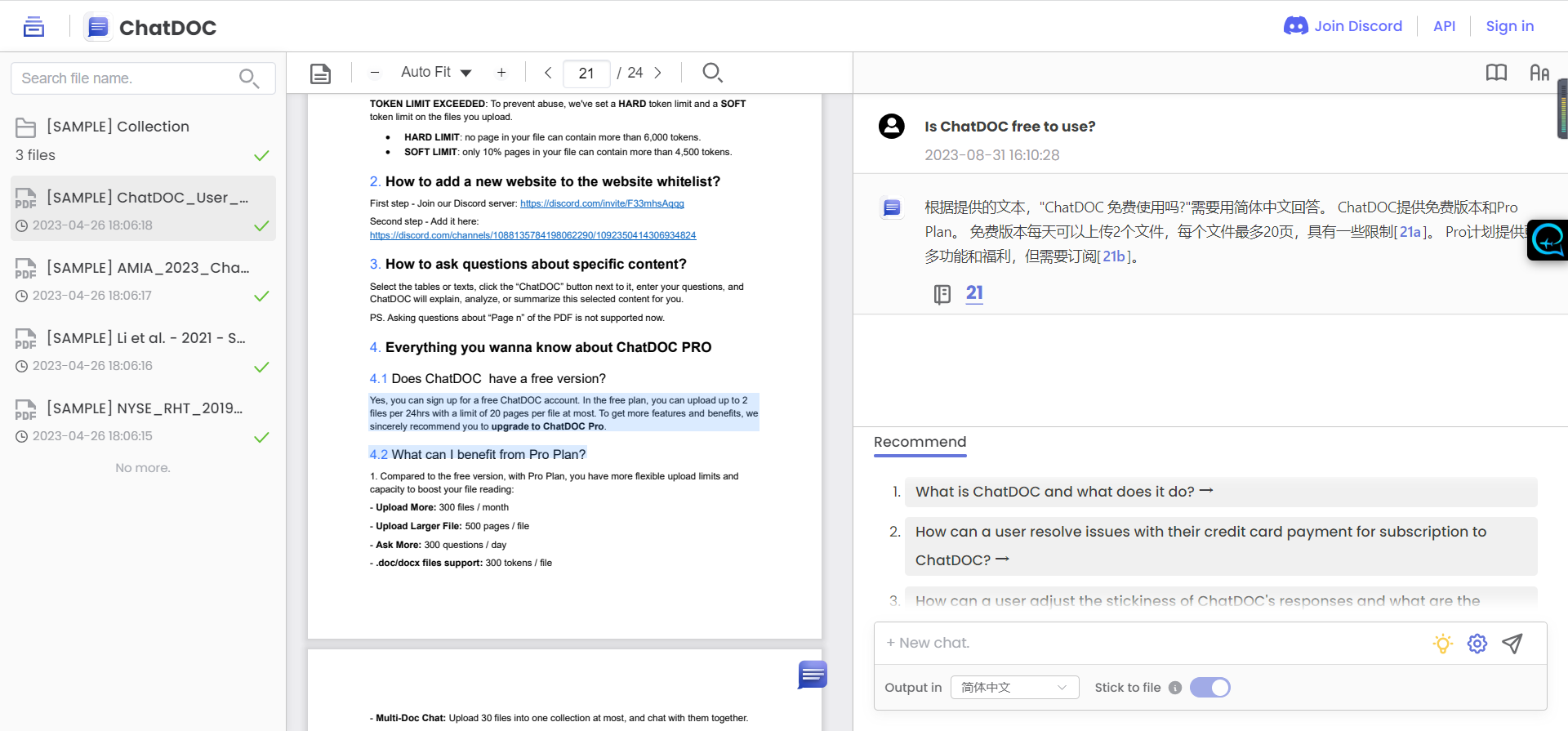 ChatDOC是一款基于ChatGPT的文件阅读助手,可以快速提取、查找并总结文档(.pdf、.doc、.docx、.md、.epub、.txt、扫描文件)中的信息。