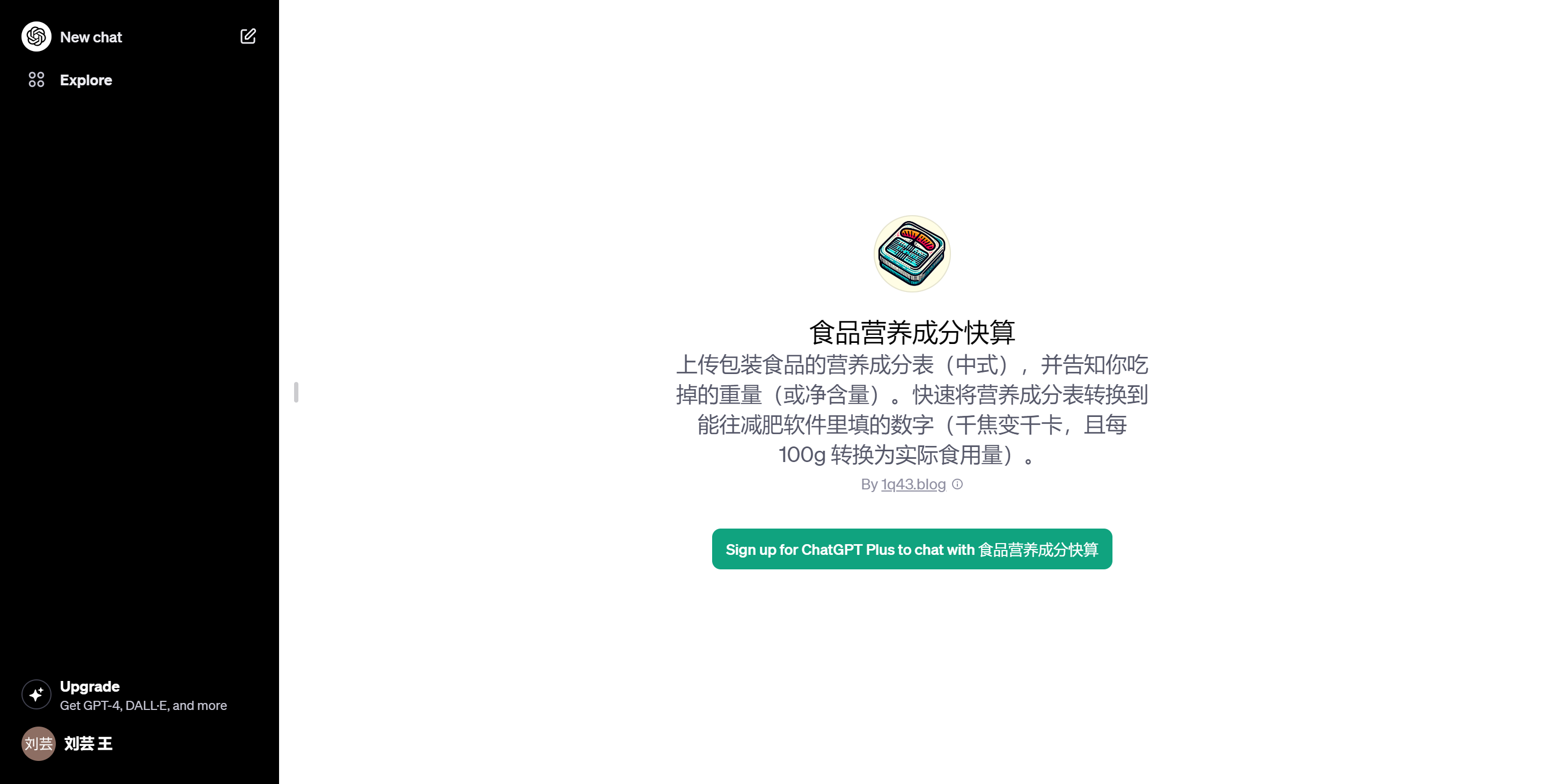 上传包装食品的营养成分表(中式),并得知你吃掉的重量(或净含量)。快速将营养成分表转换成能转换成减肥软件里填的数字(千焦变千卡,且每100g转换)为实际消耗量)。